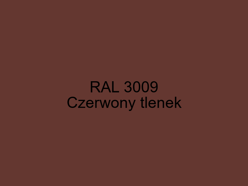 Na tej stronie pokazany jest kolor RAL 3009 o nazwie Czerwony tlenek. Jest to głęboki, ciepły odcień czerwieni, przypominający barwę rdzy. Ten kolor RAL należy do kategorii Odcienie czerwieni, która jest częścią systemu kolorów RAL Classic.