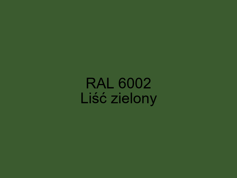 RAL 6002 nie gwarantuje dokładności odwzorowania tego koloru na ekranie i ma jedynie charakter orientacyjny, ponieważ RAL jest rzeczywistą kartą kolorów, a nie cyfrową.