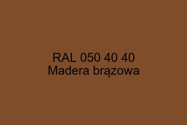 Na przedstawionym obrazie widoczny jest kolor RAL 050 40 40 o nazwie Madera brązowa. Ten wyjątkowy odcień zawiera ciepłe, ziemiste tonacje, co czyni go idealnym wyborem dla projektów wymagających naturalnego wyrazu i elegancji.
