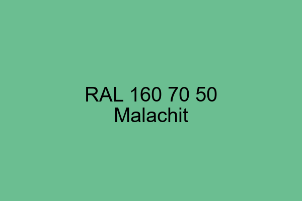 Na ilustracji widoczny jest kolor RAL 160 70 50, znany jako Malachit. Ten odcień, wpisujący się w kategorię 100 - 190 w systemie RAL Design, to głęboki, świeży ton zieleni, inspirowany naturalnym minerałem o tej samej nazwie, który dodaje przestrzeni eleganckiego i organicznego charakteru.