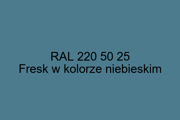 Na ilustracji widoczny jest kolor RAL 220 50 25 o nazwie koloru Fresk w kolorze niebieskim. Należy on do systemu kolorów RAL Design, a jego odcień doskonale oddaje harmonię natury, łącząc subtelne niebieskie tony z delikatną nutą szarości. Idealny do tworzenia stref relaksu i harmonii.
